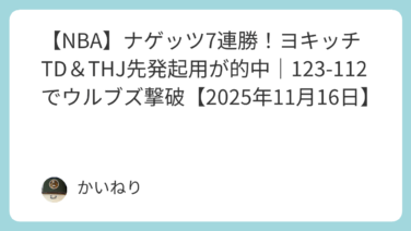 デンバー・ナゲッツがフェニックス・サンズに130-112で勝利。ヨキッチはFG7/7で26得点、マレー24得点、THJが7本の3Pで貢献。異常な3P成功率57.9%で試合を支配した一戦を詳しく振り返る。