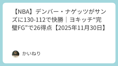 NBA 【NBA】デンバー・ナゲッツがサンズに130-112で快勝|ヨキッチ“完璧FG”で26得点【2025年11月30日】