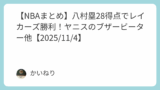日本時間2025年10月31日のNBA試合結果まとめ。まずは球団史上初の開幕5連勝を達成したサンアントニオ・スパーズの一戦から。後半に他3試合の概要と一言コメントを。