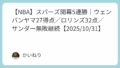 ナゲッツは現在3連勝中(3勝1敗)で、連勝を4に伸ばせるか注目。