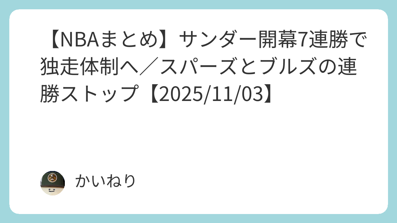 【NBAまとめ】サンダー開幕7連勝で独走体制へ/スパーズとブルズの連勝ストップ【2025/11/03】