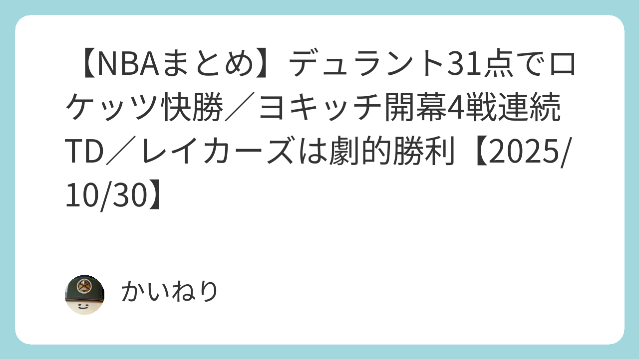 【NBAまとめ】デュラント31点でロケッツ快勝/ヨキッチ開幕4戦連続TD/レイカーズは劇的勝利【2025/10/30】