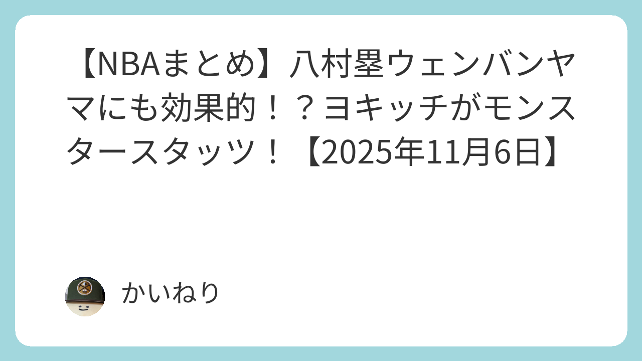 【NBAまとめ】八村塁ウェンバンヤマにも効果的!?ヨキッチがモンスタースタッツ!【2025年11月6日】