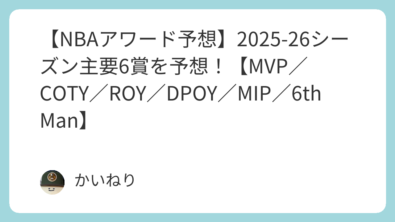 【NBAアワード予想】2025-26シーズン主要アワード&タイトル予想!【MVP/ROY/DPOY/MIP/6th Man/得点王ほか】