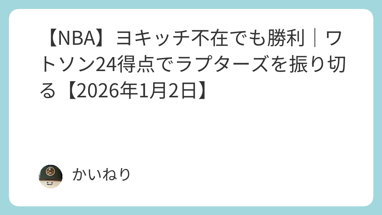 ヨキッチ不在の初戦を勝てたこと自体が何より大きい。