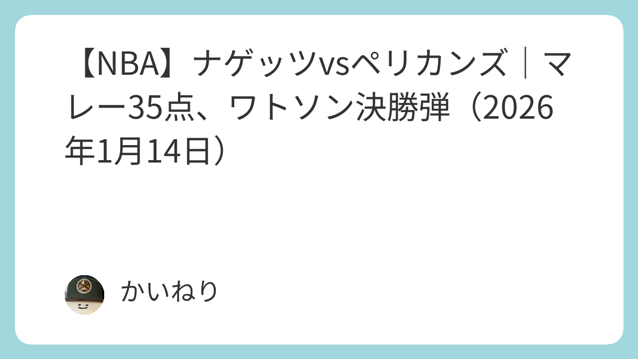 【NBA】ナゲッツvsペリカンズ|マレー35点、ワトソン決勝弾(2026年1月14日)