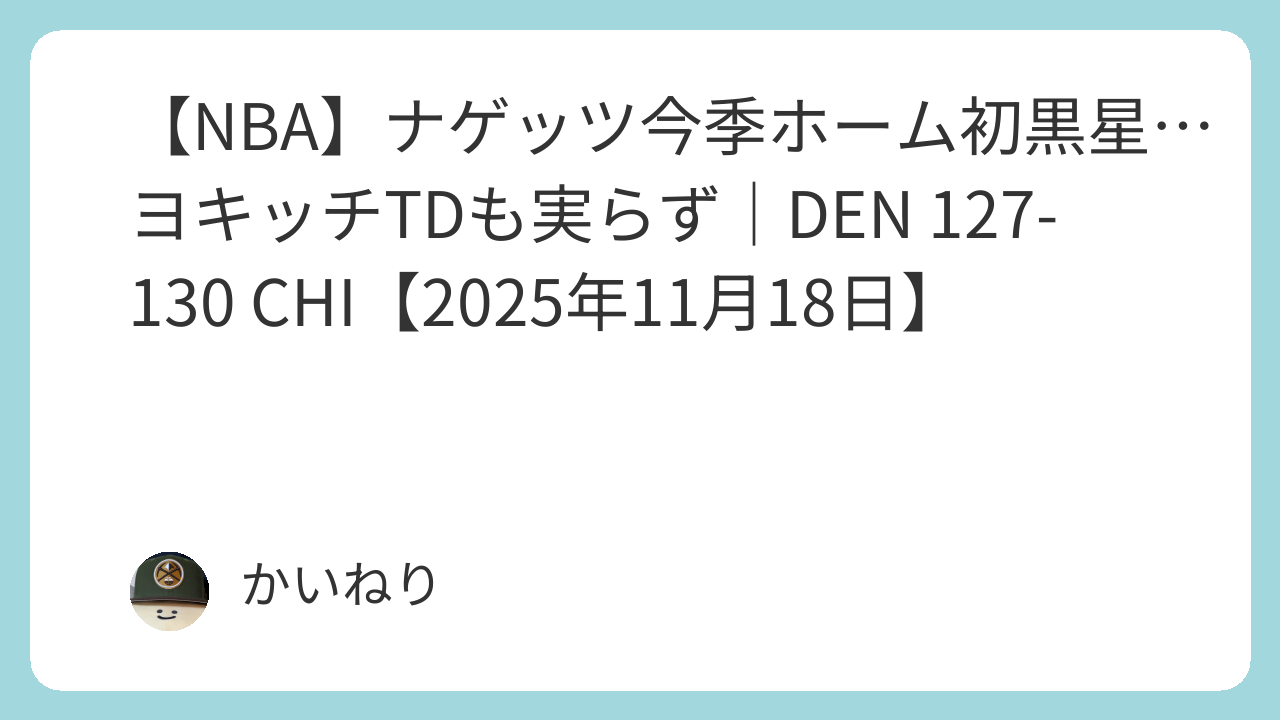 デンバーナゲッツはホームでシカゴ・ブルズと対戦し、127-130で惜敗。