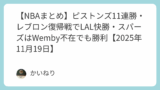 ブルズ戦をきっかけに、完全に絶不調期を抜けた感触。