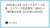 次戦は中3日でホームでスパーズ戦。大注目のエミレーツNBAカップ第4戦。勝てばノックアウトラウンドに出場が決まるというわけではないが、少しは夢見させてほしいかもしれない。トレイルブレイザーズが勝てば関係ないが。