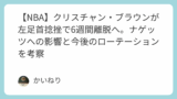 アーロン・ゴードンの右ハムストリングがグレード2と判明し、最低でも1か月の離脱が確定した。今季はディフェンス指標が完全復活し、サードオプションとしてAS級のスタッツとインパクトを残していただけに、この離脱はかなり重い。クリスチャン・ブラウンもまだ復帰の目処が立たず、当面は「今ある戦力でヨキッチとマレーの負担をどう抑えるか」がテーマとなる。