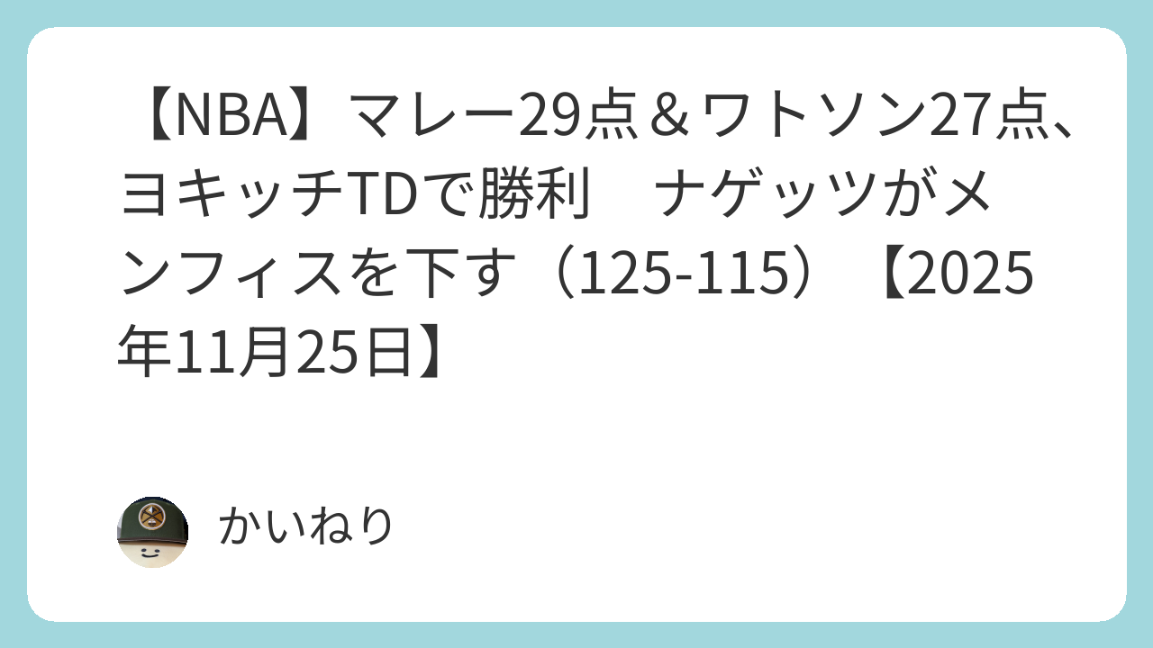 KCP…とつぶやきたくなる時間帯もありつつ、ヨキッチのディフェンスが悪かったのもあってナゲッツの終盤はなかなかにひどかったし、キャムジョンもやらかしたが、メンフィスもやらかしていたし、最後は締めたのでよし。
