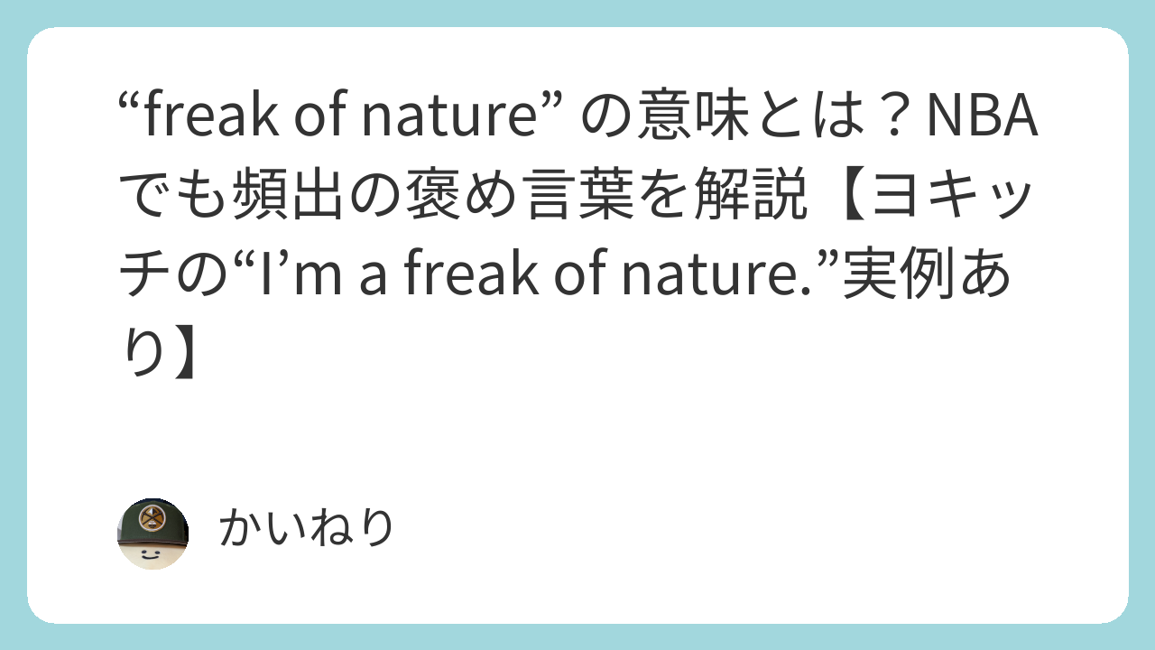 “freak of nature” は、NBA・NFL・MLBなどアスリートを形容する際に非常に多い表現です。