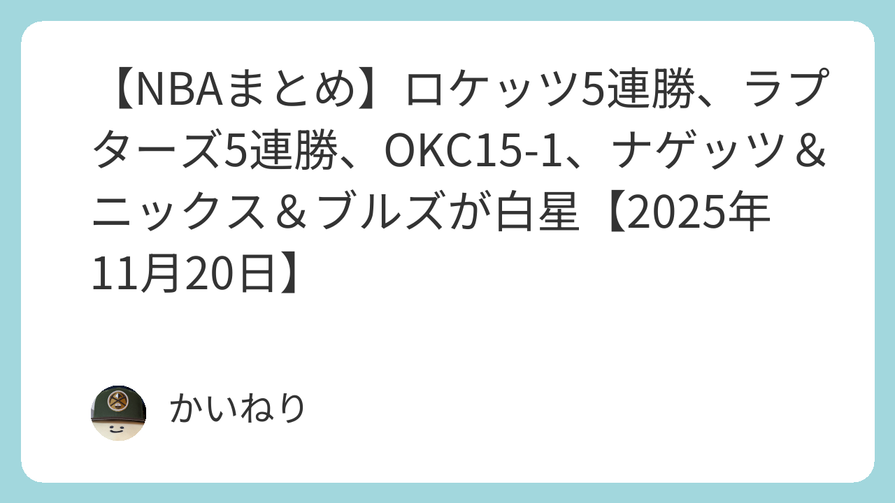 Jakob Poeltlが19得点、Immanuel Quickleyが18得点(終盤にクラッチ3P×2)、Scottie Barnesも16得点9リバウンド5アシストと、TORはいつもの“全員バスケ”で5連勝(直近10戦で9勝)。