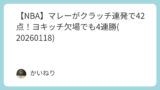- 次戦:クリッパーズは月曜にウィザーズ戦(アウェー)、ラプターズは日曜にレイカーズ戦(アウェー)から西遠征5連戦開始。