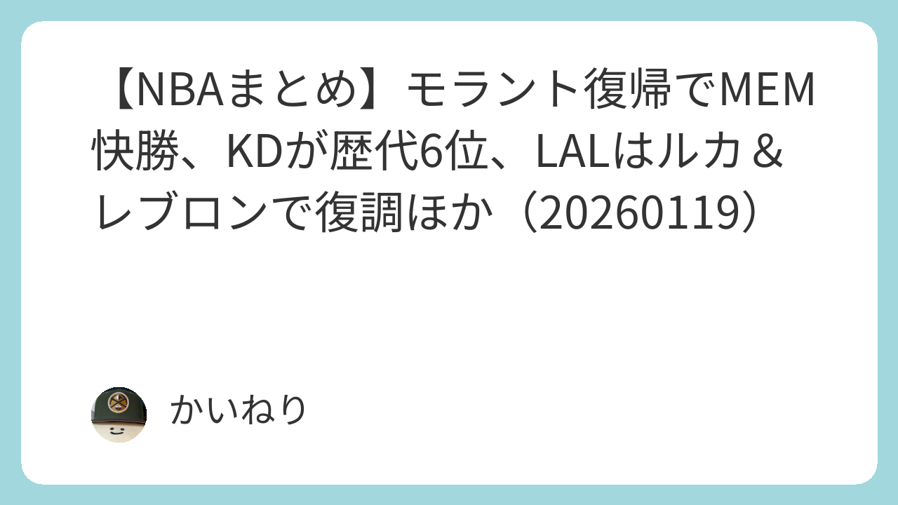 コメント:いやーな予感はしていたが下回ってきたな。ヨキッチとバランチュナスに加えてAGも欠場だとリバウンドがきつすぎる。はやめにガベージ入ったしダメージは最小限か。次戦は勝てるかなあ。レイカーズ相手だしスリーポイント当てて勝ってほしいところだが。今日は別記事の詳細はなしで。